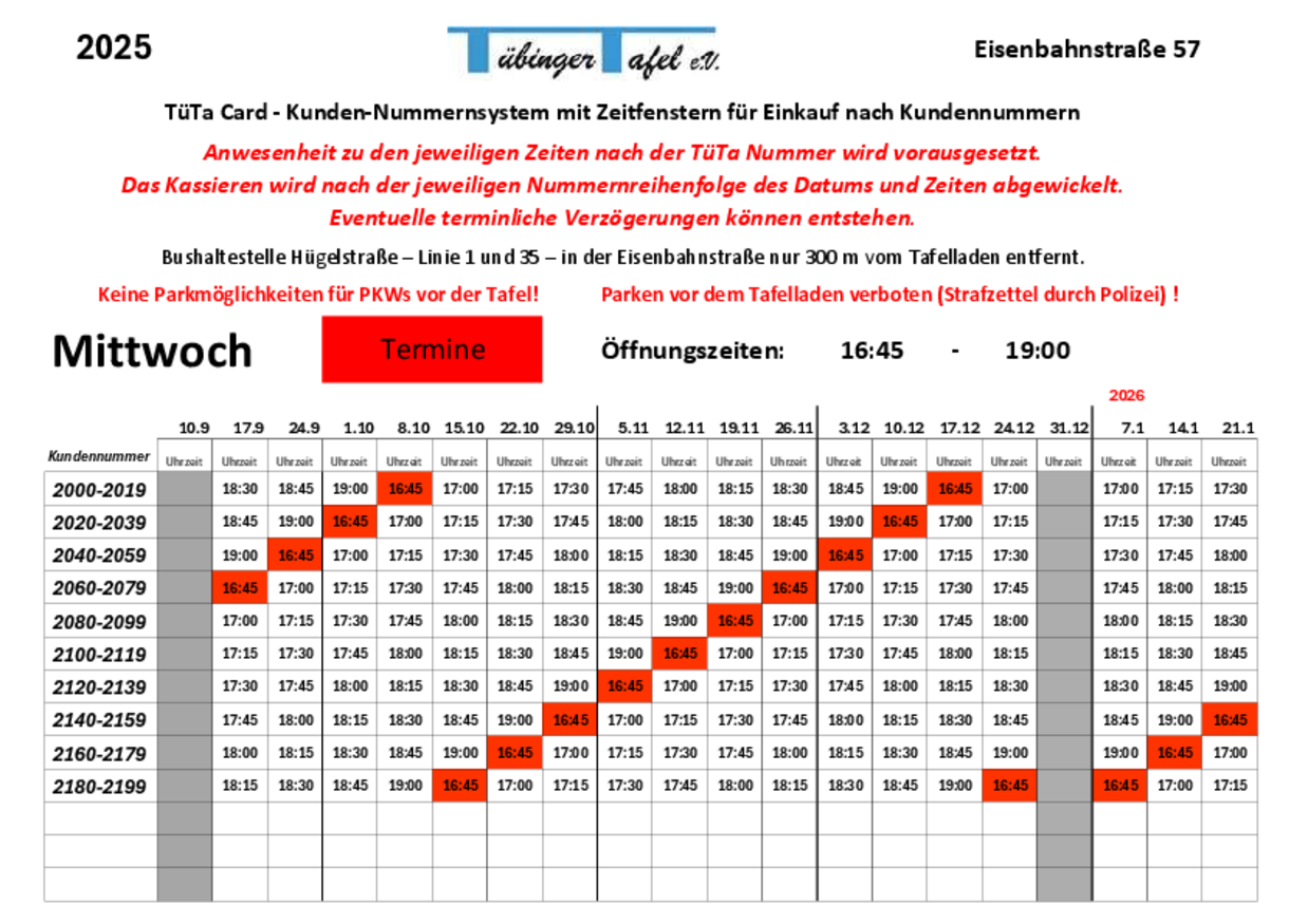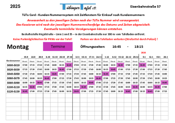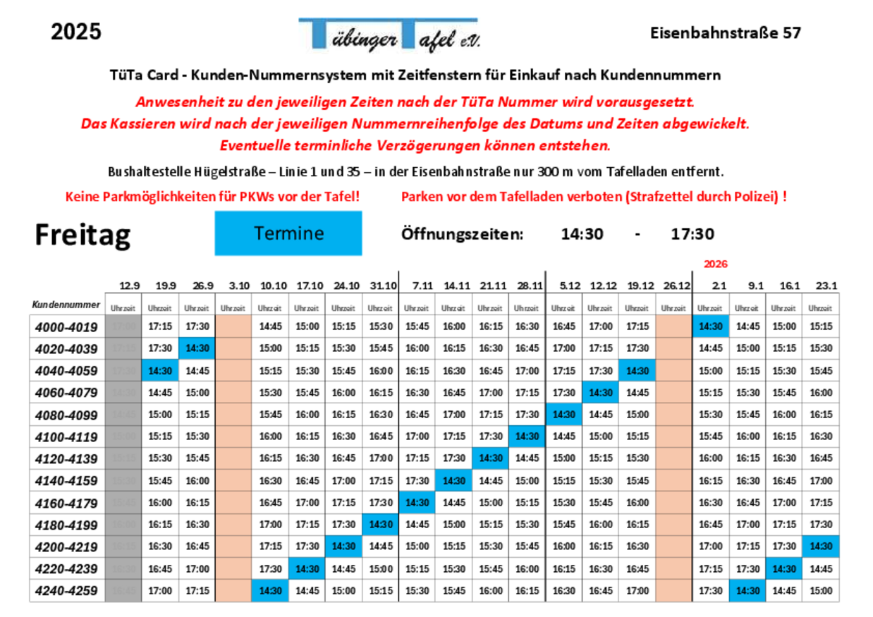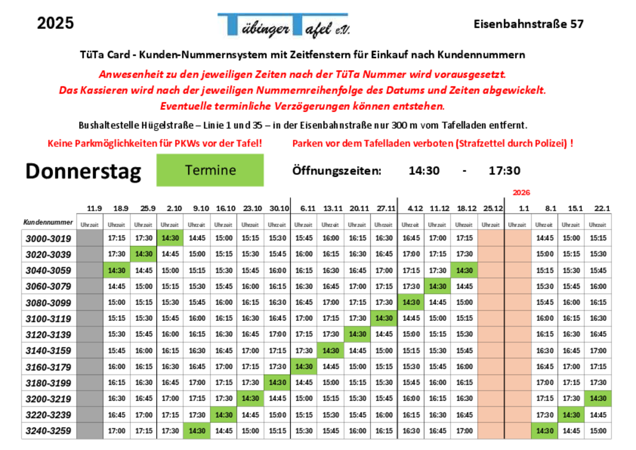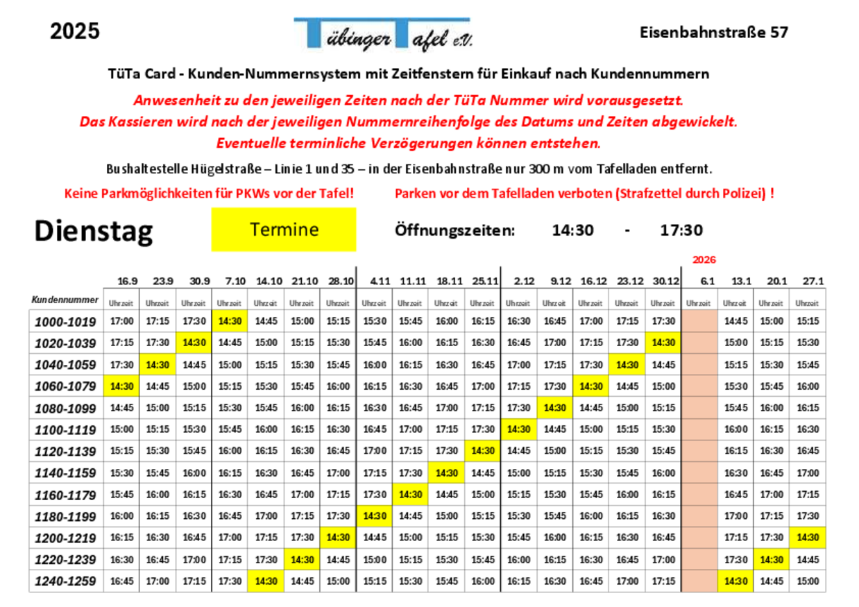 Wann kann ich mit meiner Tübinger Tafel Kundenkarte einkaufen?