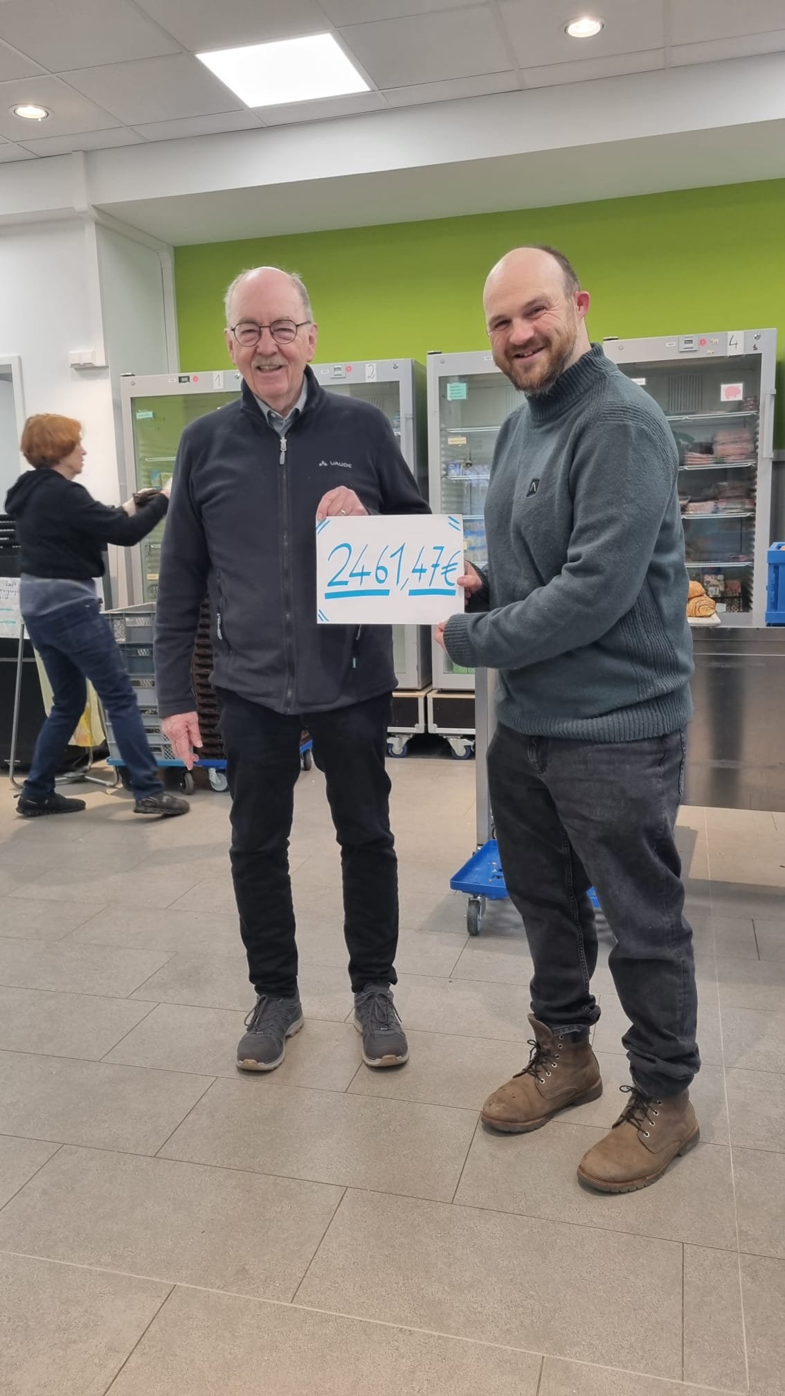 Am 19.02.2025 überreichte Tobias Rockenfeld im Namen von Theatersport Tübingen eine Spende der Zuschauer*innen an die Tübinger Tafel in der Höhe von 2461,47 Euro.